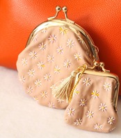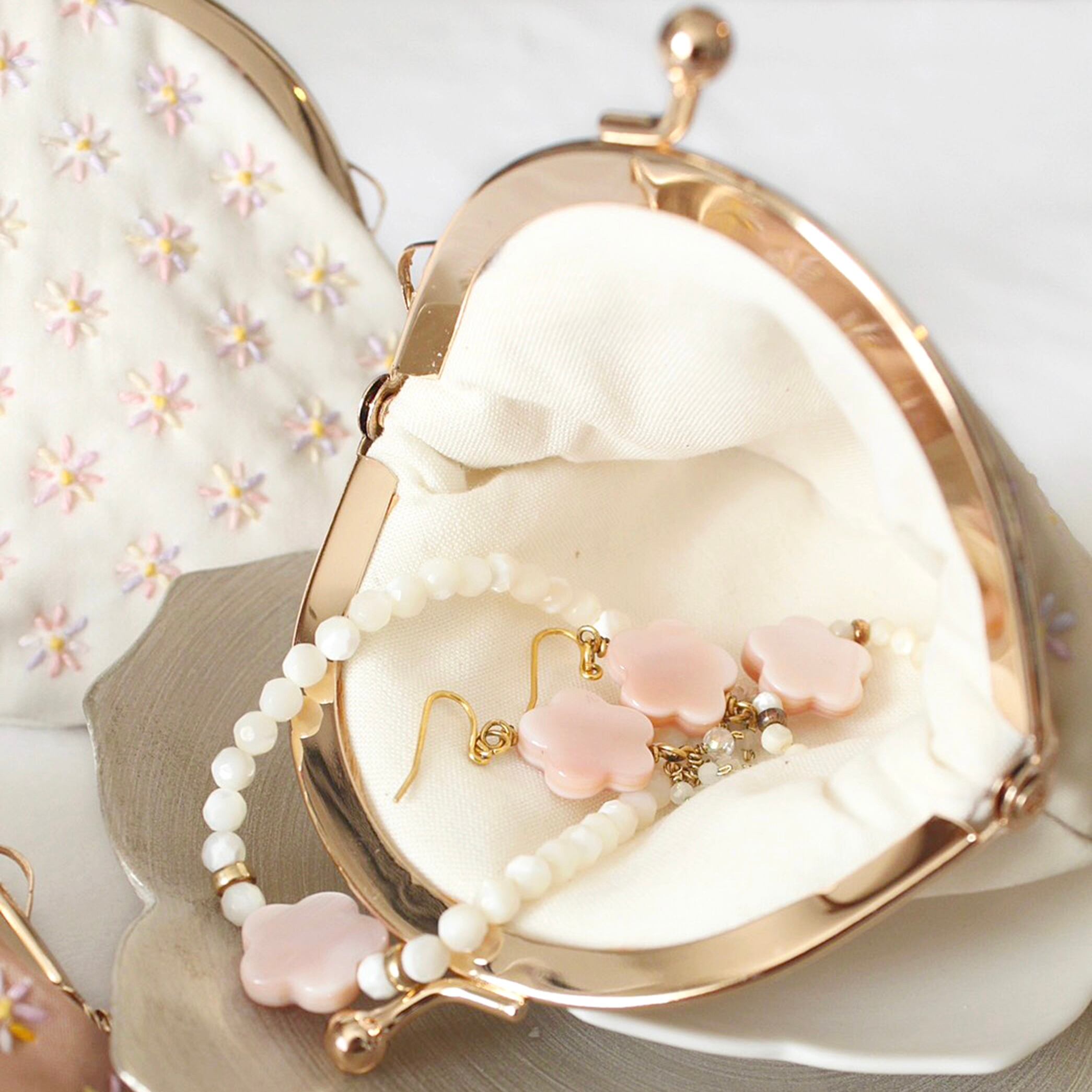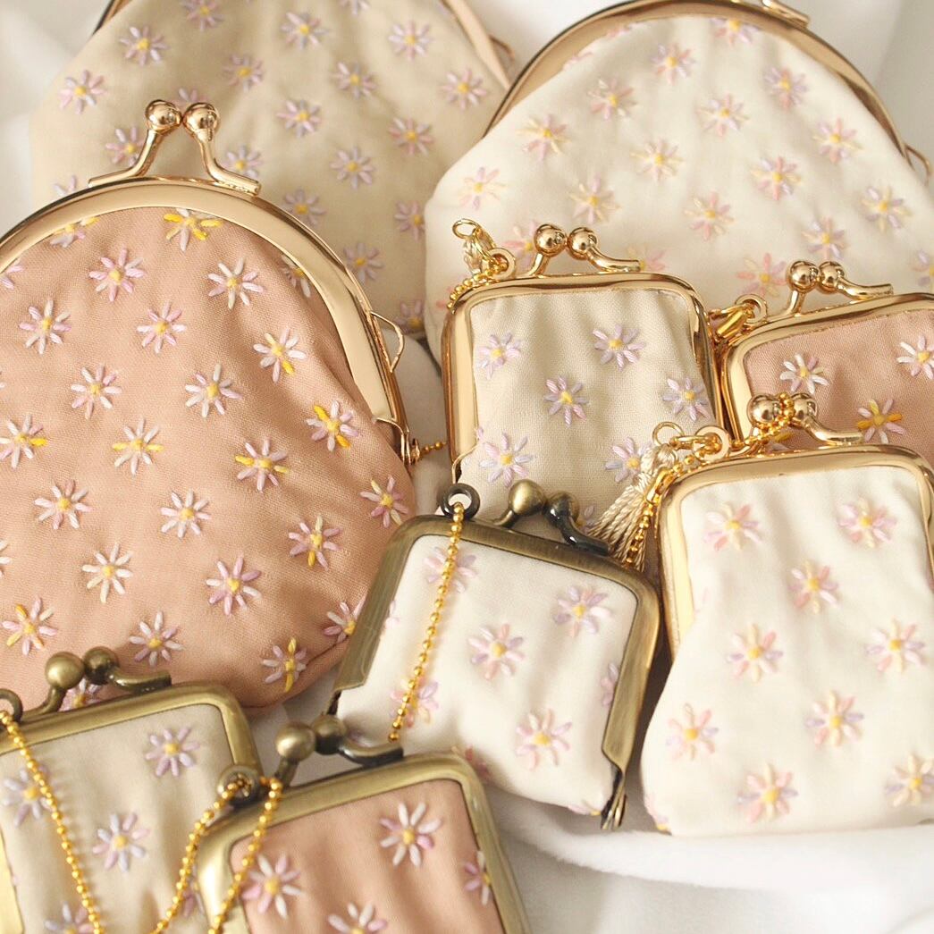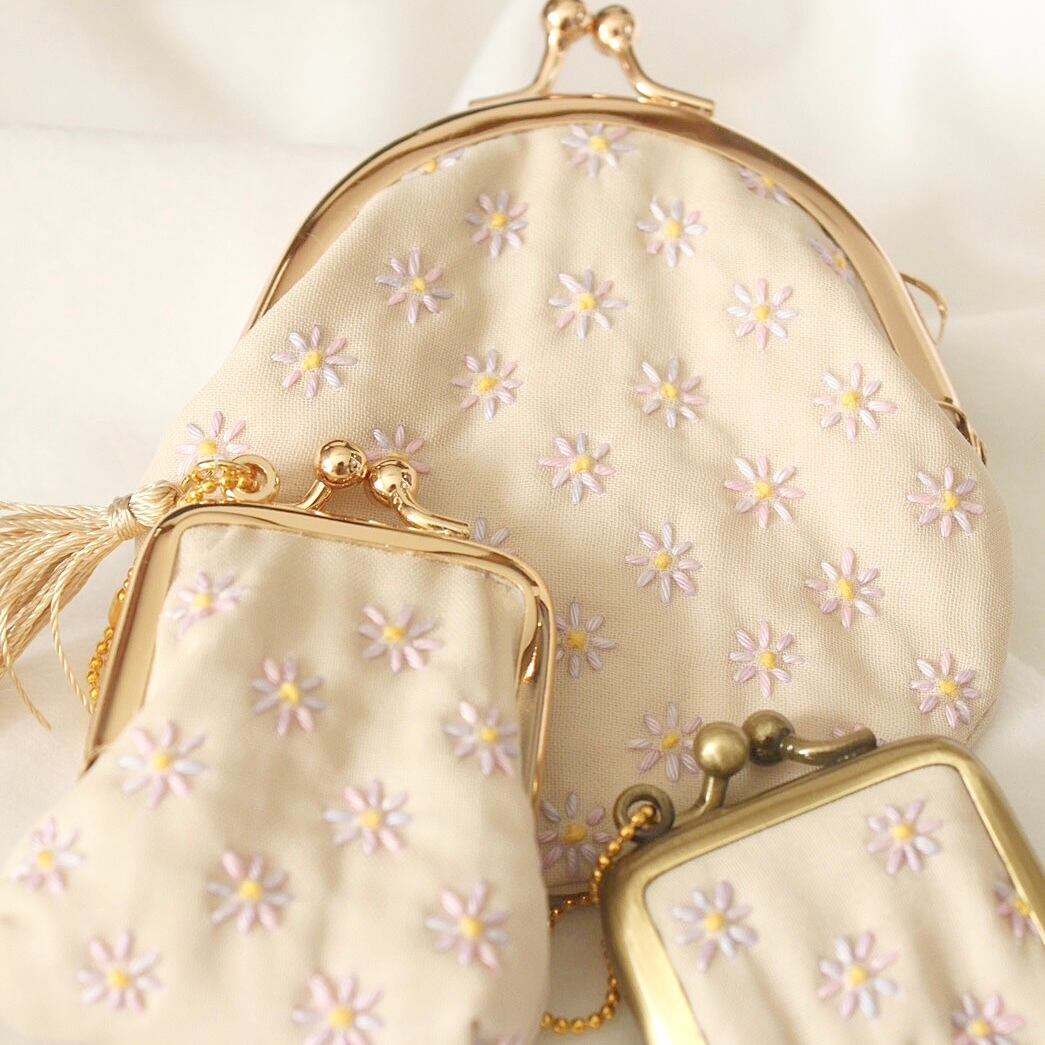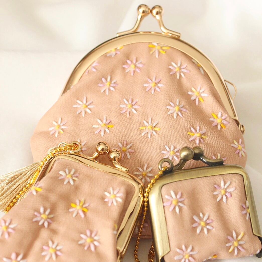 表に小花柄の刺し子を施しているため、華やかながま口になりました。