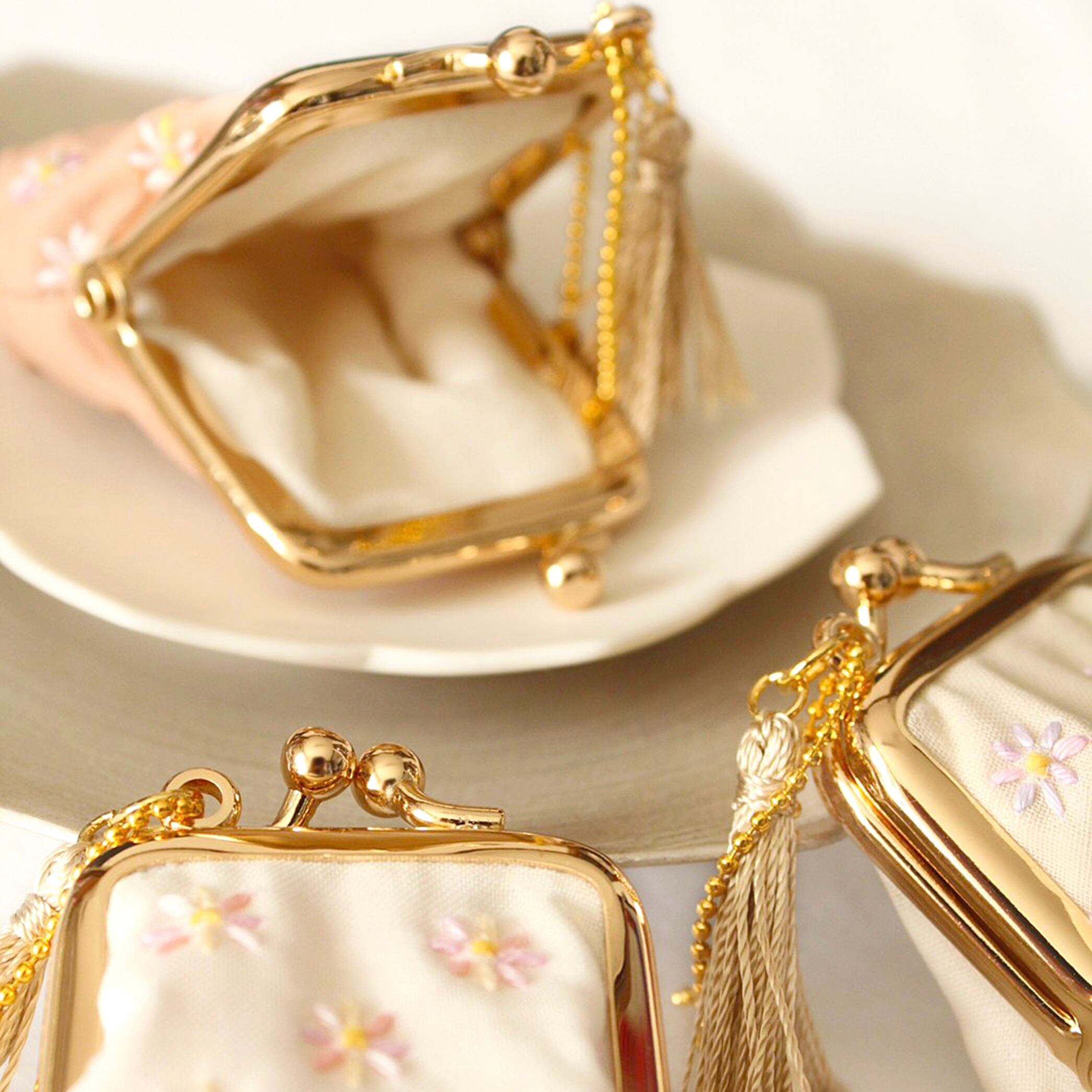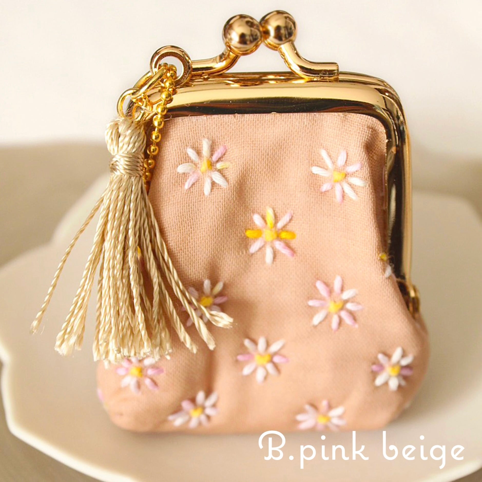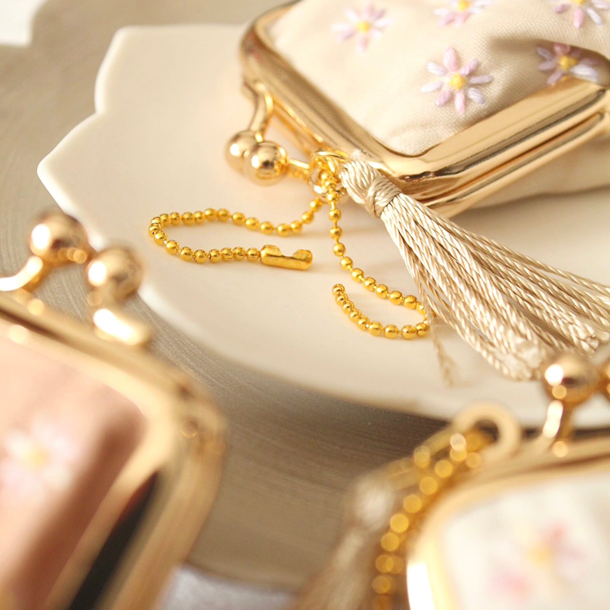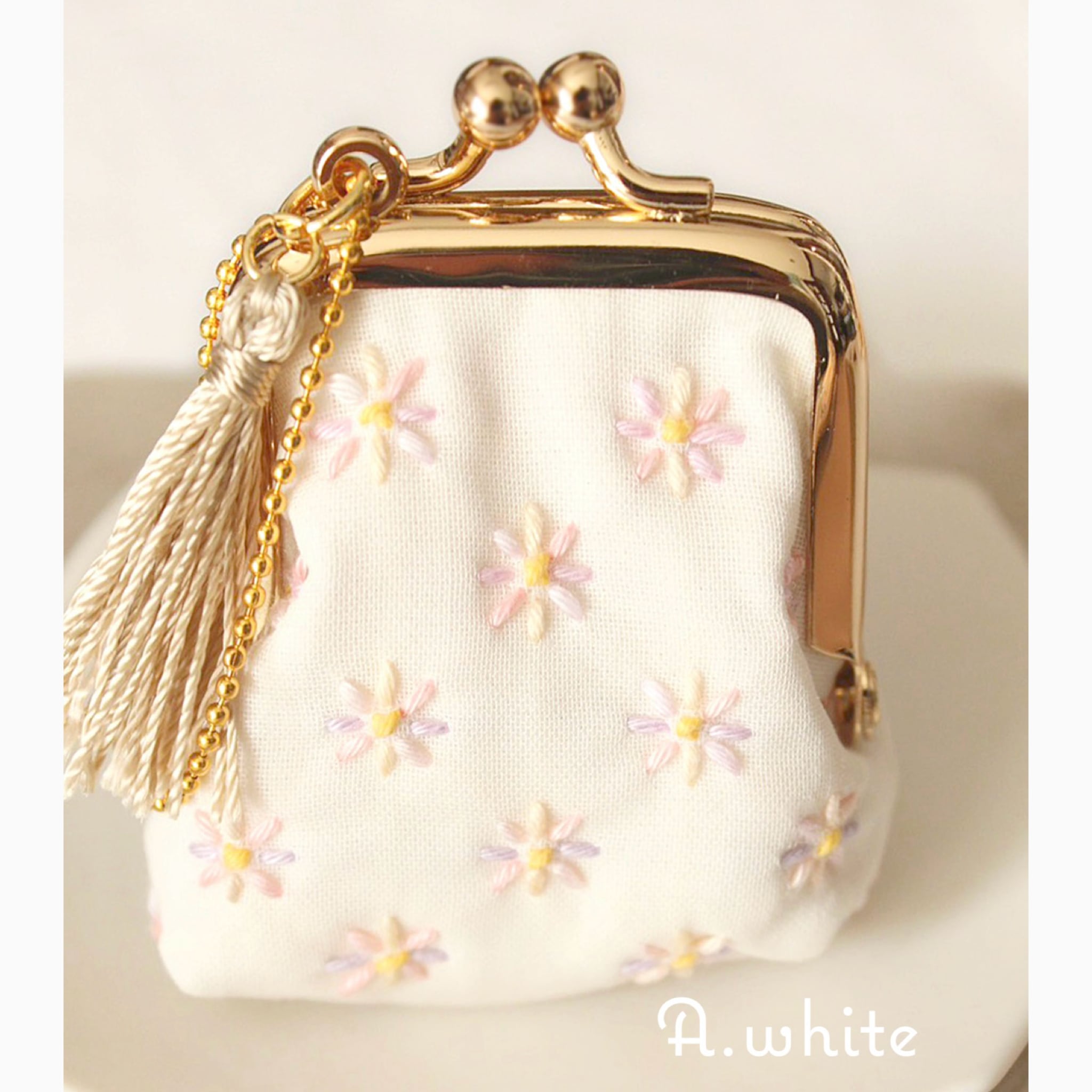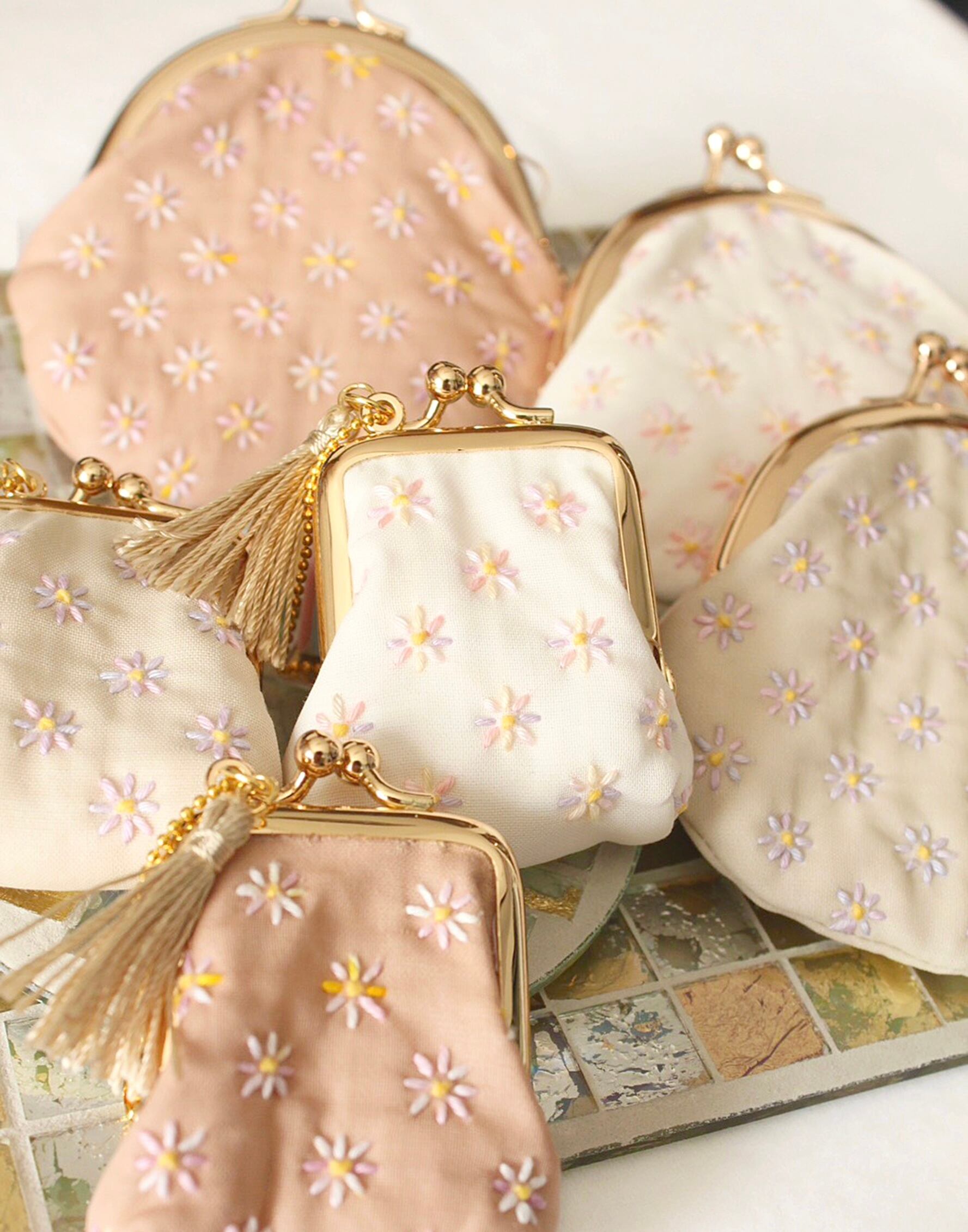 表に小花柄の刺し子を施しているため、華やかながま口になりました。