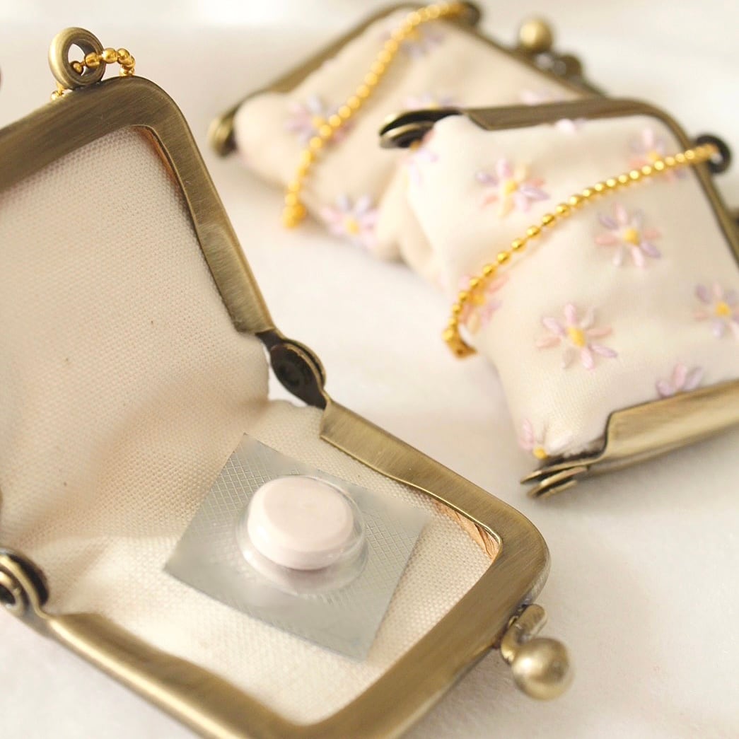 小さいサイズですが、500円玉や錠剤、指輪なども入ります。