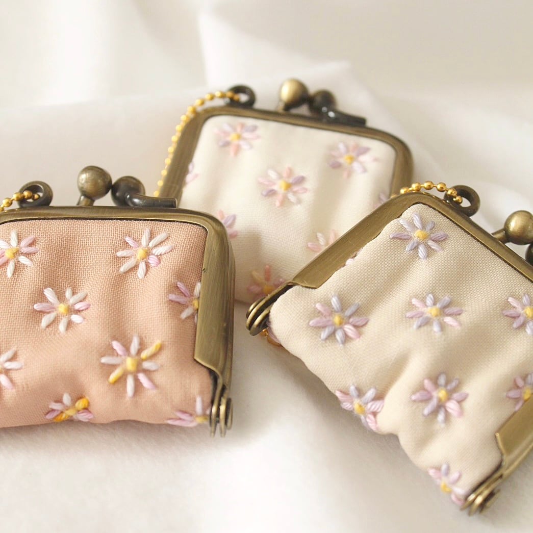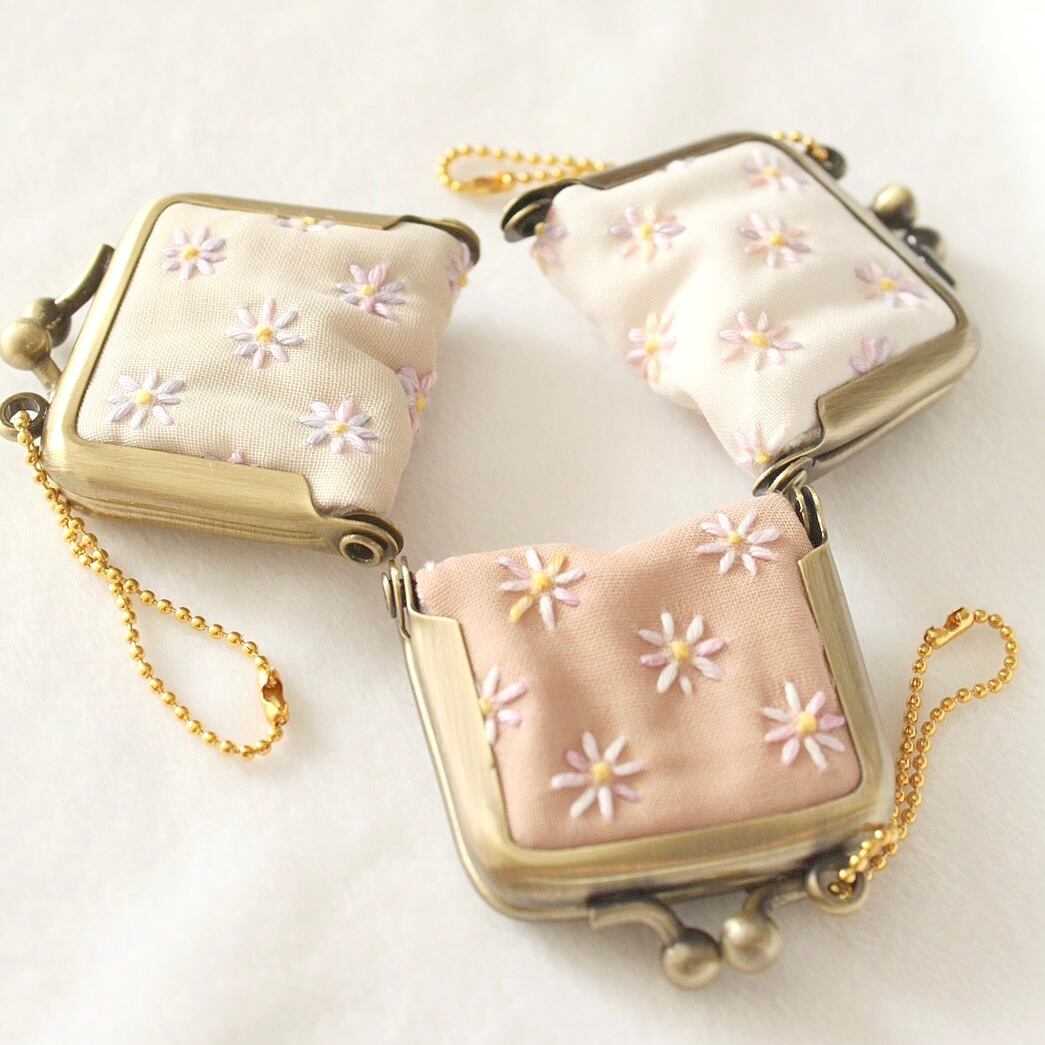 表に小花柄の刺し子を施しているため、華やかながま口になりました。