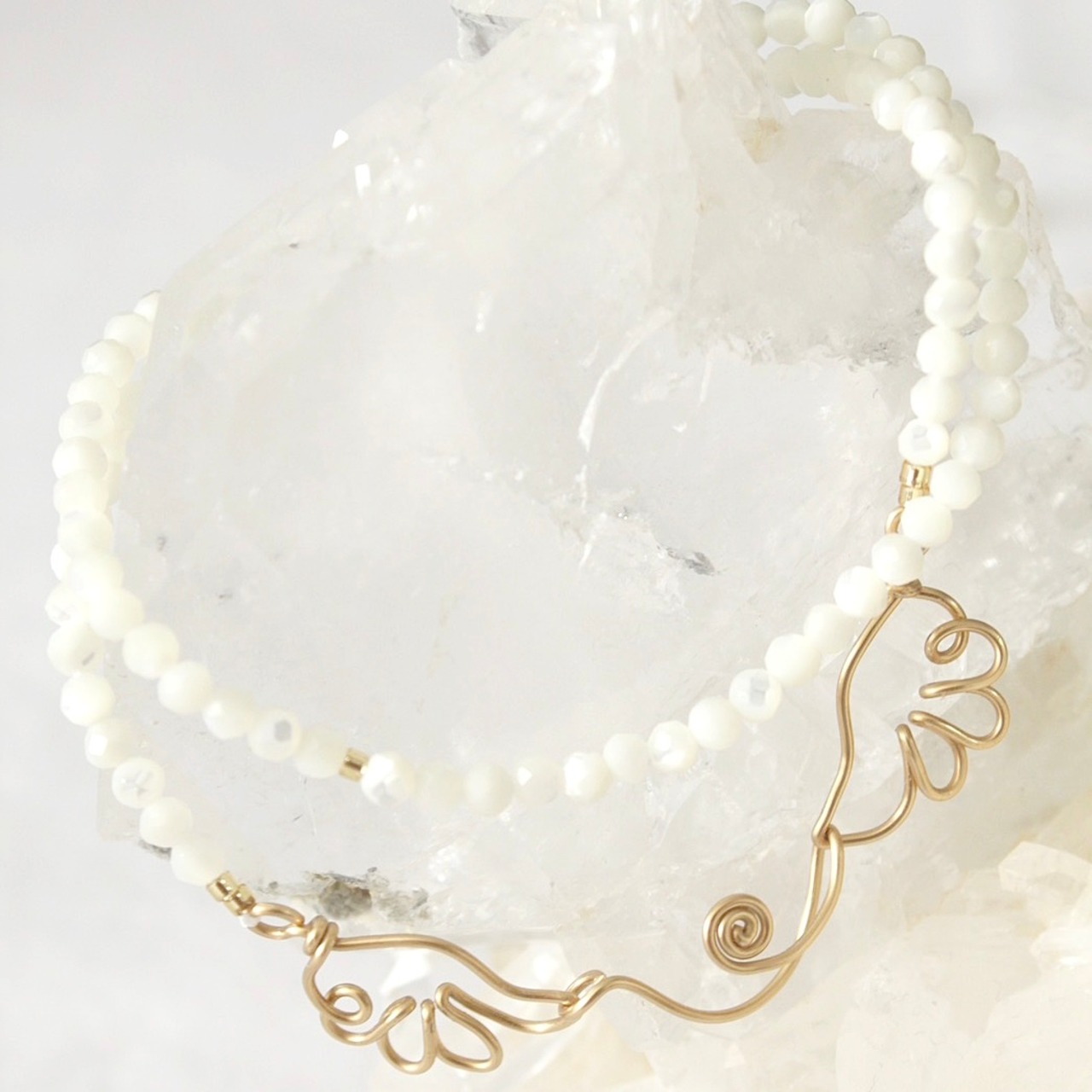 ※ビーズの中に糸を通しているため、強めに糸を引き締めてお仕立てしております。着用されているうちに自然と糸が伸び、なじんでいきます。