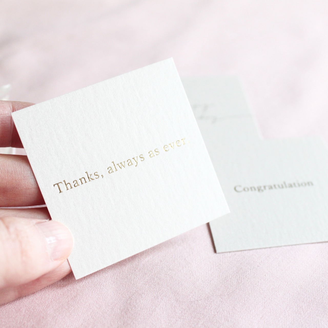ホワイトの紙に箔押しが美しい、とても上品なメッセージカードです。